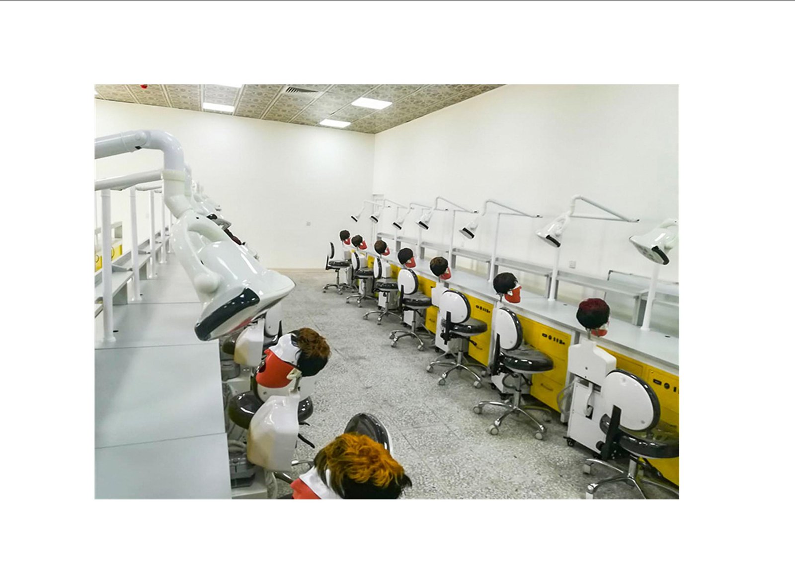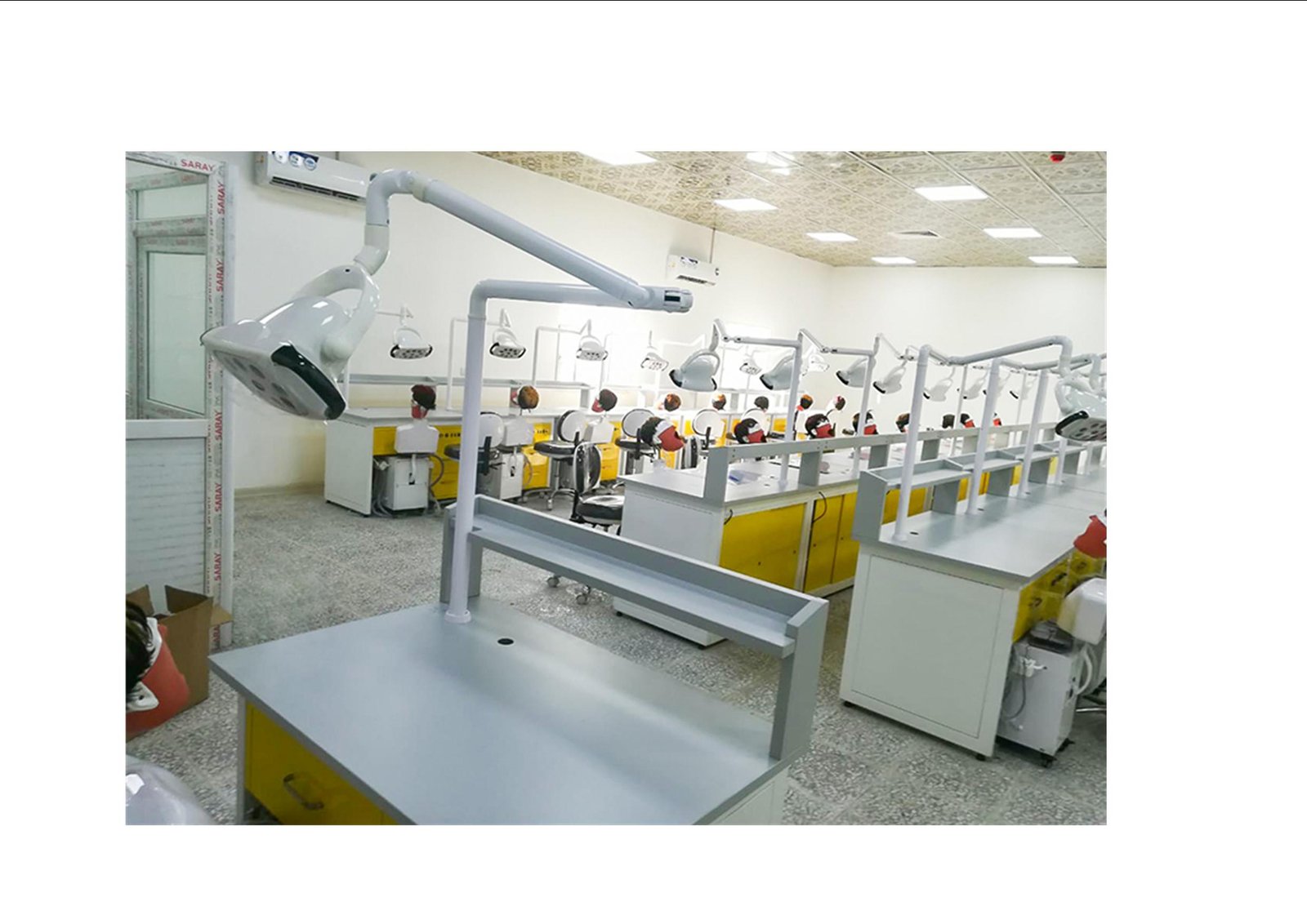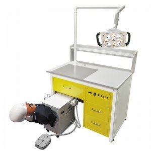 Electric control with simulator (head, portable unit, lab table, LED sensor light). Great integration for multimedia education and false tooth repair. It is a model machine for use in stomatology colleges and laboratory settings.