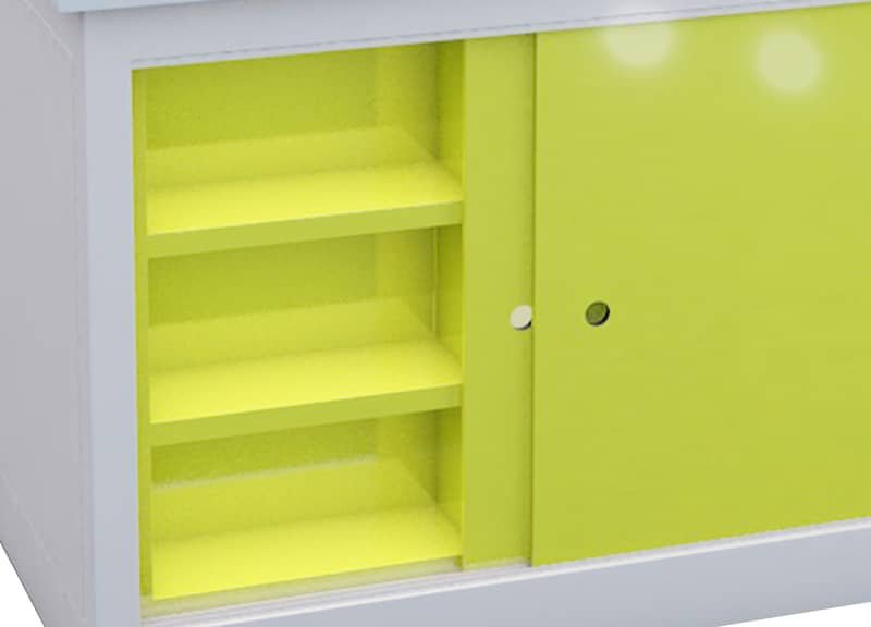Students can keep their handpieces and instruments in individually configurable cabinets. These can, as required, include drawers and/or cupboards. The drawers and doors are lockable, and the drawers have an auto track/lock system.